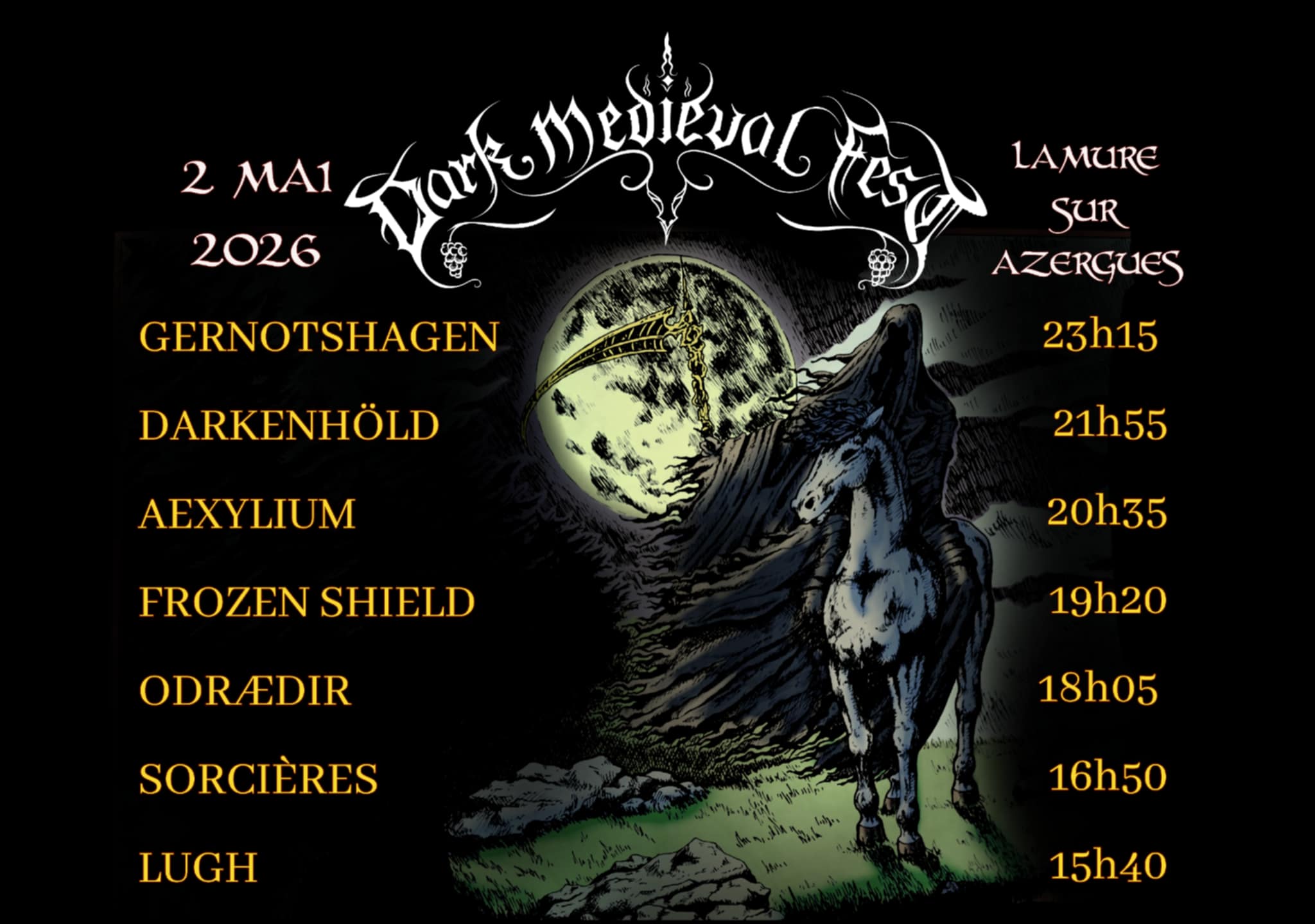 News Dark Medieval Fest VI : running order 5 avril 2026 Fée Verte Laisser un commentaire Le running order du prochain Dark Medieval Fest est disponible ! Share : Partager sur Facebook(ouvre dans une nouvelle fenêtre) Facebook Partager sur X(ouvre dans une nouvelle fenêtre) X Partager sur Tumblr(ouvre dans une nouvelle fenêtre) Tumblr Partager sur Pinterest(ouvre dans une nouvelle fenêtre) Pinterest Similaire