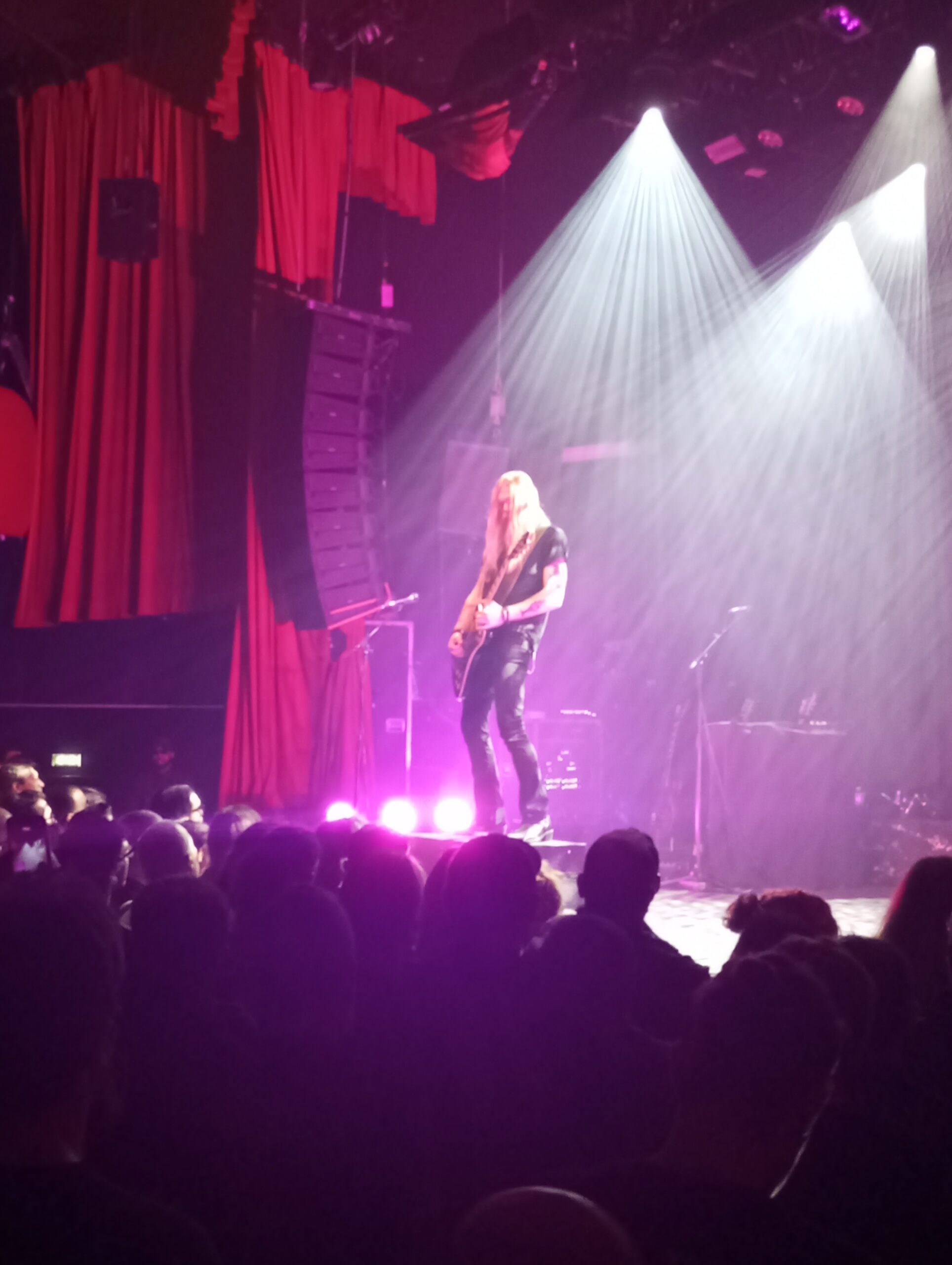 Après ce léger traumatisme, je découvre un autre groupe affilié comme Iotunn à la scène metal progressif : Soen. Le chanteur Joel Ekelöf débarque sur scène vêtu tel un dandy, lunettes de soleil au visage. Un des deux guitaristes, Lars Enok Åhlund, avait plus d’une corde à son instrument puisqu’il assurait également les parties aux claviers. La formation suédoise nous a d’ailleurs gratifiés de très beaux passages aux claviers et à la guitare. Quant à son chanteur, celui-ci délivrait ses paroles de sa voix profonde, envoûtante et suave.