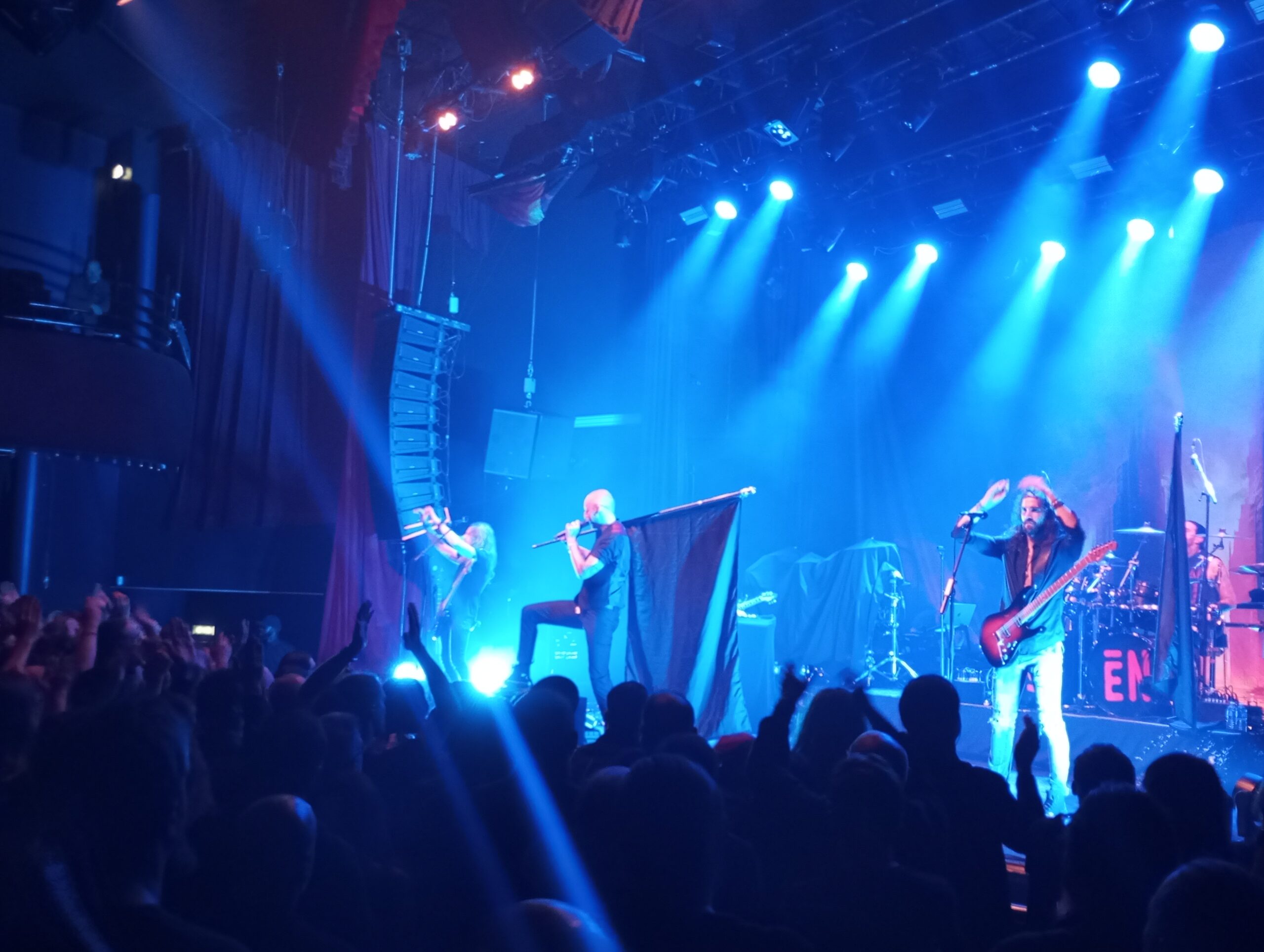 Avec ces éléments en tête, c’était compliqué d’aborder le set sans a priori, mais bénéfice du doute, j’allais tout de même laisser une chance au nouveau line-up. Avant le set, je quitte le deuxième rang et migre derrière la barrière sur le côté droit de la scène. Après une intro aux tambours par la tête pensante René Berthiaume et le bassiste, le drame commence avec « Born to Be Merdic »… euh « Epic », au temps pour moi. Finalement, pour que le désastre passe mieux, j’assiste au set avec une bonne touche de second degré, à tel point que je ne peux parfois m’empêcher de rigoler nerveusement. Je suis tout de même étonnée de constater que le public est plutôt réceptif. On enchaîne avec « Renegades – A Lost Generation » (je ne te le fais pas dire…). Aïe, aïe, aïe, ces sonorités kitch disco, je ne savais pas que j’étais à un concert d’ABBA… Heureusement qu’il y avait au moins « Blut im Auge » à se mettre sous la dent pour les nostalgiques, et encore, c’était loin d’être la meilleure version live que j’ai entendue. Le groupe a présenté en exclusivité deux morceaux de son prochain album, cela m’a ainsi permis de savoir en avant-première que ce n’est pas avec celui-là qu’Equilibrium risque de parvenir à me reconquérir. L’âge d’or semble bel et bien révolu…