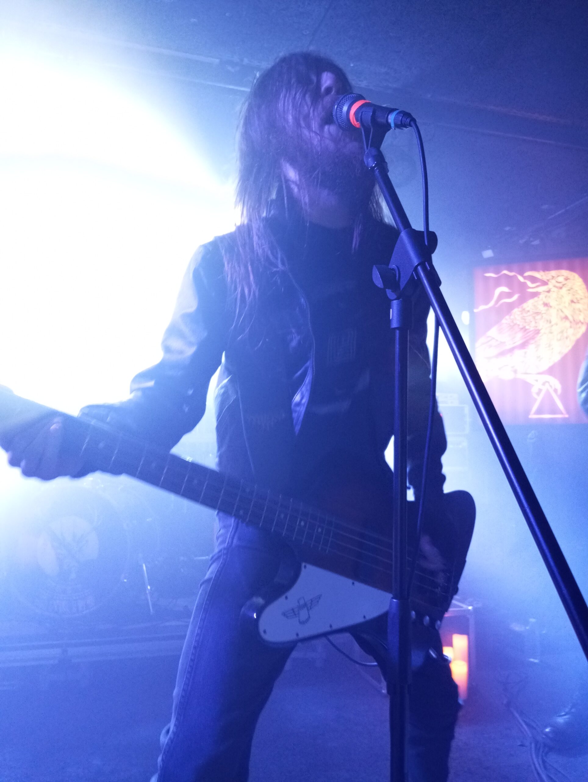 Je ne connaissais pas du tout les deux groupes de première partie, j’ai écouté quelques morceaux avant le concert. Sans trop spoiler, mon ressenti concernant les deux groupes s’est confirmé en live. On débute donc la soirée avec Toward the Throne. Le groupe alsacien présentait son deuxième album Midnight paru il y a un peu plus d’un mois. Sur scène, des bougies sont disposées de part et d’autre de la batterie, ainsi que les jolis visuels de corbeaux dorés affichés sur deux étendards.