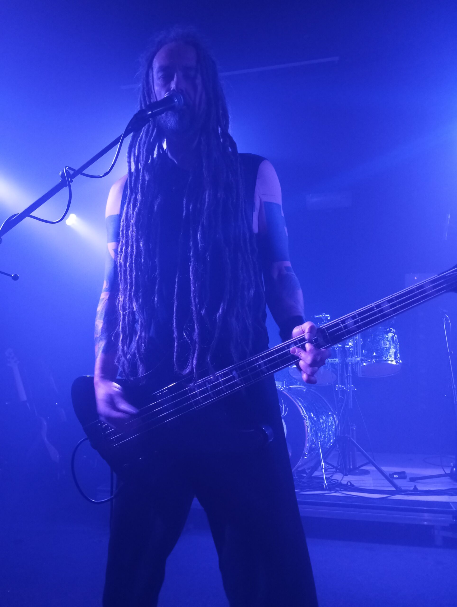 La soirée se poursuit avec Bong-Ra, projet initié par Jason Köhnen. N’étant absolument pas une adepte du genre, j’ignorais que la formation néerlandaise est considérée comme l’une des pionnières du breakcore. Sur scène, le groupe prend la forme d’un trio, et ce qui saute immédiatement aux yeux lorsque l’on est habitué à une configuration classique dans le metal, c’est l’absence de batterie. On retrouve ainsi Jason Köhnen au chant et à la basse, accompagné de deux guitaristes. L’un d’eux s’est d’ailleurs joint au public dans la fosse en fin de set.